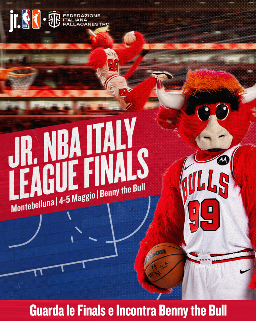 Insieme a Datome e Meyer, in Veneto arriverà anche una delle mascotte più iconici di tutta la NBA. Per la prima volta ospita in Italia, Benny The Bull, la mascotte ufficiale dei Chicago Bulls e vincitore per 12 volte del premio NBA Mascot of the Year, con oltre 5 milioni di follower sui social media, intratterrà pubblico e giocatori al PalaMazzalovo, per la due giorni delle Jr. NBA/Jr. WNBA FIP Schools League Finals. Benny The Bull animerà ai pubblico e i giocatori durante entrambe le giornate con le sue performance, giochi e contest dedicati, coreografie e momenti di interazione diretta con il pubblico. Oltre all’evento delle Finals, Benny The Bull svolgerà iniziative di impegno e sensibilizzazione nella comunità durante la sua permanenza in Italia.