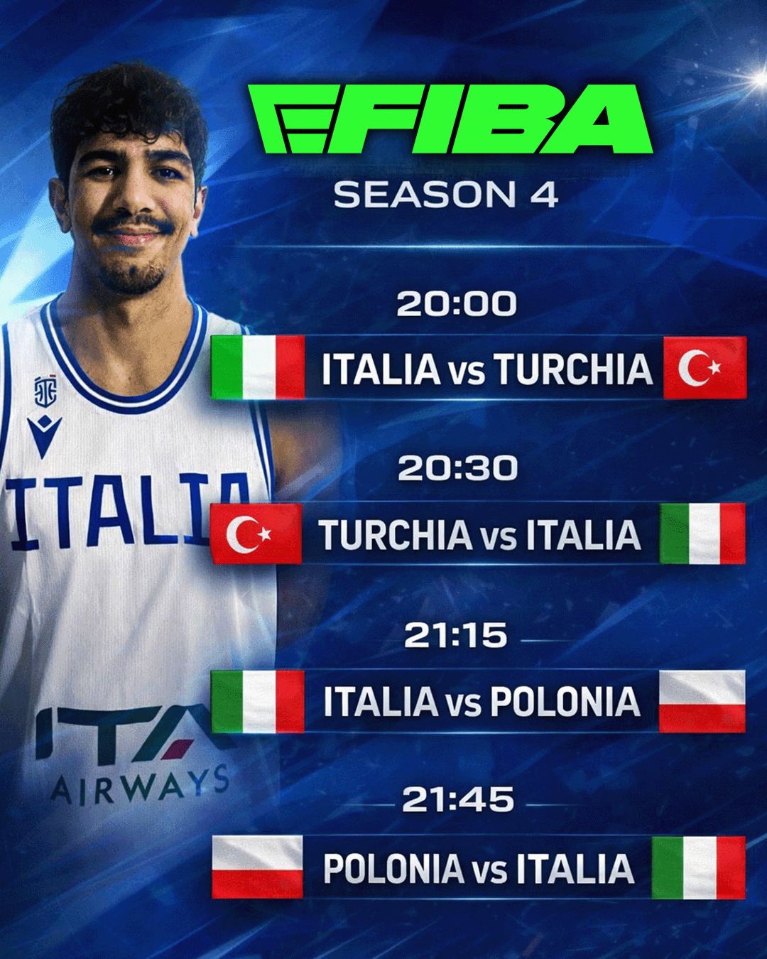 eFIBA Season IV. Italia a punteggio pieno dopo i primi due match. Il 22 gennaio le altre due gare. 115 punti per l’esordiente Vizzoo