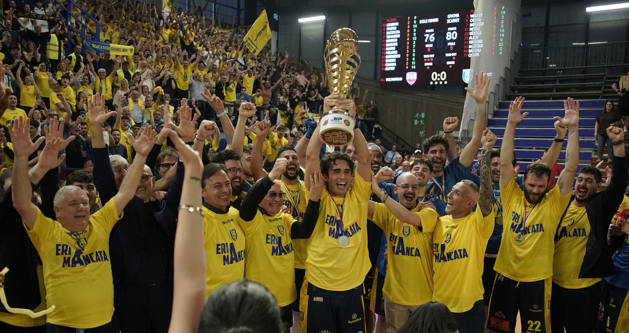 Alla Givova Scafati, al patron Aniello Longobardi, al presidente Angelo Rossano, al capo allenatore Frank Vitucci, allo staff e ai giocatori vanno le e felicitazioni del presidente FIP Giovanni Petrucci per il meritato ritorno in serie A.