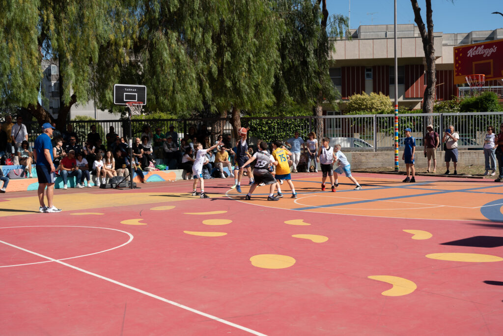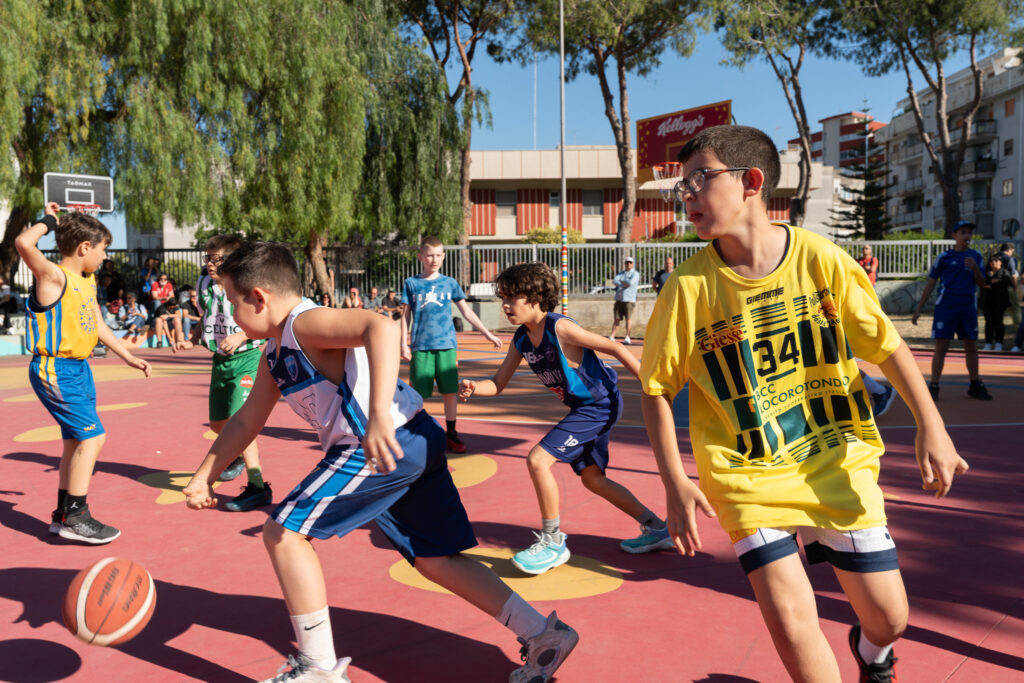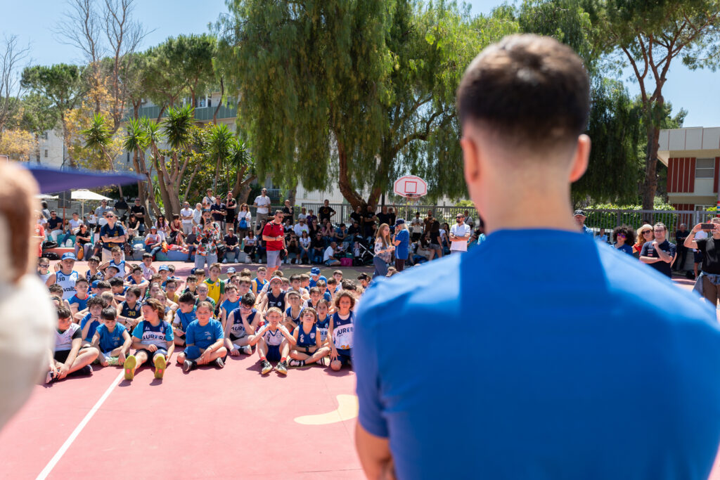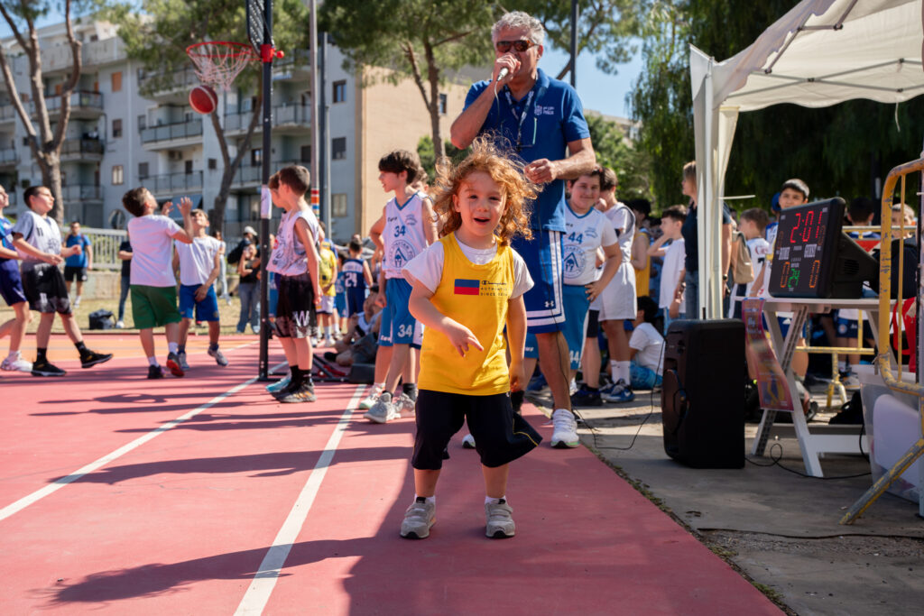 A salutare le ragazze e i ragazzi è passato anche Matteo Spagnolo, playmaker della Nazionale nato proprio a Brindisi. “Quando avevo la vostra età – ha detto il giocatore dell’Alba Berlino – mi piaceva tanto venire qui a giocare su questo campetto. Vedervi tutti qui mi riempie il cuore e oggi ho voluto esserci per forza. In voi rivedo la passione che avevo io per il basket. E’ bello vedervi divertire!“