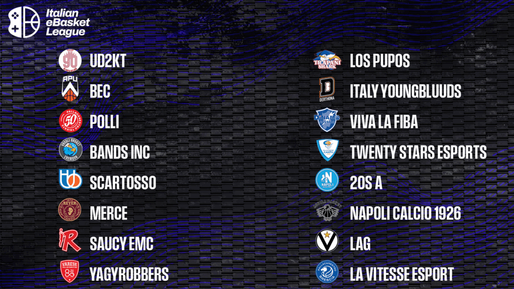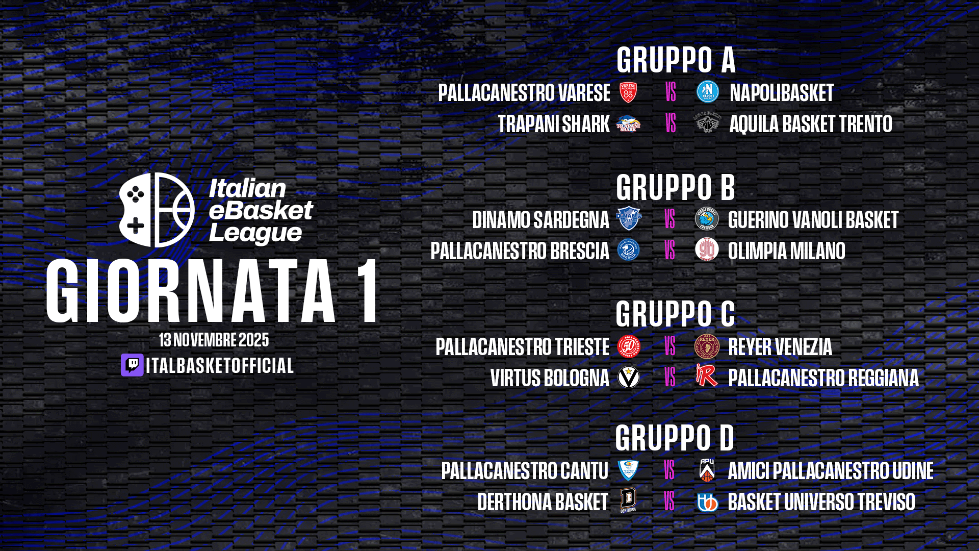 La formula. Per arrivare all’Italian eBasket League, le 16 squadre di gamers (modalità 3v3) hanno dovuto superare due turni di Qualifiers, ai quali hanno partecipato 50 teams (141 gamers). Durante il Draft Event squadre di gamers non solo sono state abbinate ai 16 club LBA, ma anche inseriti nei 4 Gironi da 4 della Regular Season. Al termine della fase a gironi (in diretta su Twitch tutti i giovedì dal 13 novembre e fino al 18 dicembre 2025), le migliori due squadre di ciascun girone si qualificheranno per il Final Event di Torino.