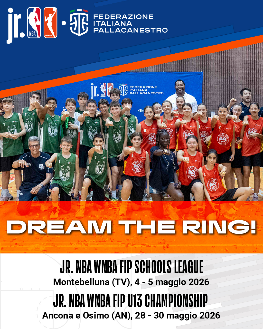 Jr. NBA FIP, i Final Events di maggio 2026 sono a Montebelluna (Scuola) e Ancona (U13)