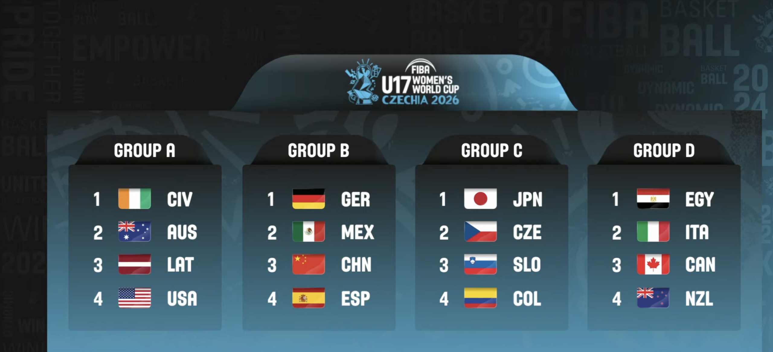 Si è tenuto oggi a Brno il sorteggio dei gironi del prossimo Mondiale Under 17 Femminile che si giocherà in Cechia dall’11 al 19 luglio 2026.