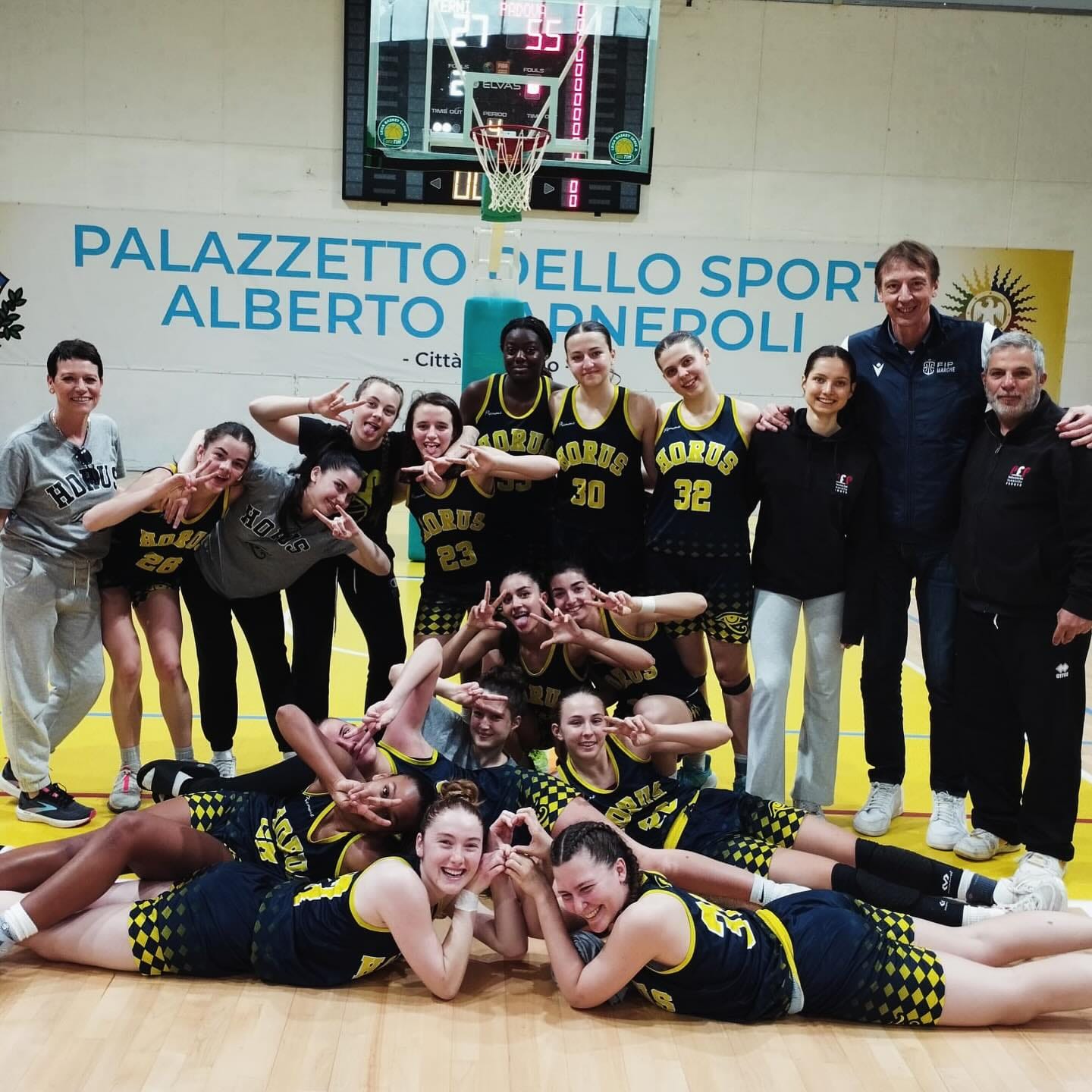 Il bello della pallacanestro giovanile è anche mettere di fronte realtà completamente diverse tra loro, come avviene in questa Next Gen. Club storici con fior di Scudetti, nuovi progetti che puntano a fare altrettanto, ma anche società che vedono nel risultato sportivo soltanto la punta dell’iceberg di un lavoro che si propone di essere innanzitutto un riferimento sociale sul territorio. E quale sia la principale mission della Horus Padova è il nome stesso (scelto attraverso un piccolo concorso indetto tra gli atleti stessi) a chiarirlo: le sigle -or e -us provengono da Usmi Basket e Cmb Orfeo, le due realtà del quartiere Sud-Ovest che nell’estate 2019 si sono unite a questo nuovo polo cittadino. Si è poi aggiunta la H iniziale per indicare Horus, dio egizio figlio di Osiride simboleggiato dal falco, ma anche evidenziando il simbolismo danese hyggie: sta per accoglienza, calore e intimità. Proprio quella che si respira all’interno di questa grande famiglia gialloblù, che oggi conta di circa 700 iscritti.