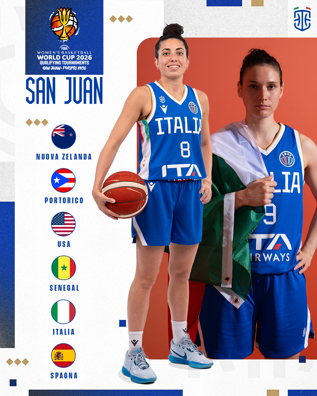 Porto Rico, Stati Uniti, Spagna, Nuova Zelanda e Senegal: saranno queste le avversarie delle Azzurre sulla strada della FIBA Women’s World Cup 2026 che si giocherà dal 4 al 13 settembre 2026 a Berlino. Questo l’esito del sorteggio dei quattro tornei pre-Mondiali che si è tenuto oggi alla “Patrick Baumann House of Basketball” di Mies (Svizzera).