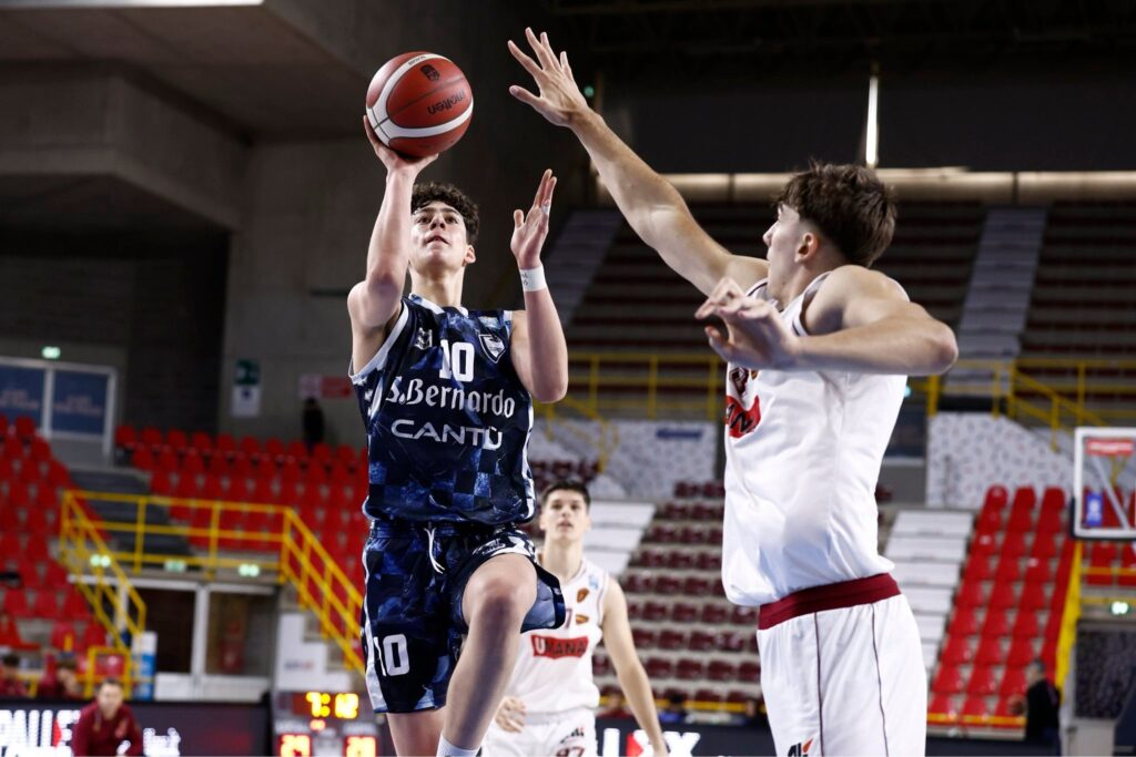 L’inizio col botto (vittoria 82-80 sulla capolista Varese Academy con un gioco da tre punti di Thomas Acunzo) ha rischiato di essere leggermente vanificato dalla battuta d’arresto casalinga con la Robur, ma la giovanissima Pall. Cantù (6 vinte – 4 perse) – Presotto l’unico 2007 del roster – ha blindato il passaggio del turno con un altro finale in volata vinto con Gallarate (87-85) ed il gran secondo tempo a Varese sponda Robur (51-29) per il 99-72 finale. Matteo Molteni (14.9 per gara, con oltre 4 assist e 4 rimbalzi ed un significativo 46% da 3 punti) guida un team lungo e solido – Niccolò Gualdi e Bogdan Zimonjic sfiorano la doppia cifra – in cui ha finito in grande crescita l’azzurrino classe 2009 Simone Ventura (20.3 nelle ultime tre) e che si divide con la prima formativa esperienza senior, nel campionato di B interregionale giocato con la canotta di Saronno.
