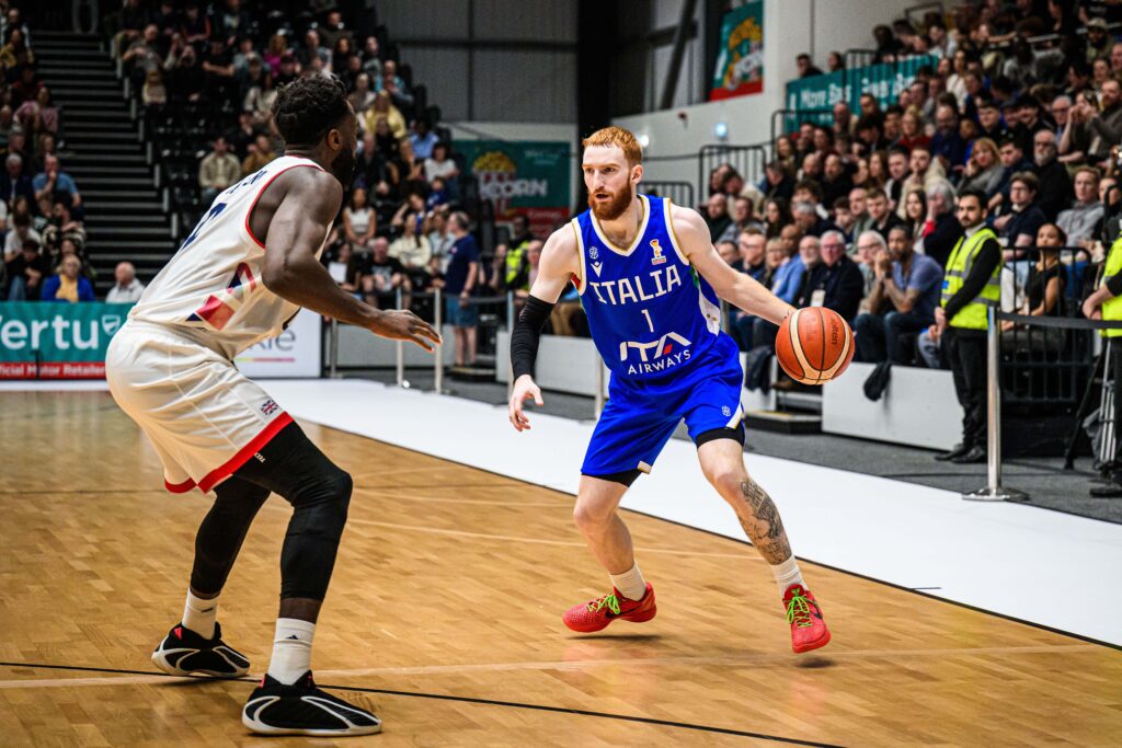 Giovanni Veronesi, all’esordio in Nazionale, va subito in quintetto con Mannion, Tonut, Diouf e Niang. E’ proprio lui che propizia il bell’avvio degli Azzurri, che già nei primi tre minuti mettono sotto la Gran Bretagna (3-13). La tripla di Tonut allunga ancora il divario e la “Vertu Arena di Newcastle” risuona solo delle urla degli italiani arrivati per tifare la squadra di Banchi. Coach Steutel corre ai ripari e i suoi smuovono il punteggio tornando a -9 (12-21) a due minuti dalla prima sirena. 4 punti in fila di Capitan Tessitori anticipano il canestro del suo compagno di squadra a Venezia (e Capitano della Gran Bretagna) Carl Wheatle. Mannion chiude dalla lunetta un quarto da 32 punti per l’Italia, che guida con un rotondo +18 (14-32). Non cambia molto nella seconda frazione: la difesa Azzurra concede pochissimo agli avversari, che non trovano mai il bandolo della matassa e vanno anche sotto di 20 (19-39). Banchi predica umiltà e concentrazione nonostante il gap: i suoi non mollano un centimetro e vanno all’intervallo sul 27-51. La supremazia del primo tempo è netta e certificata anche dal confronto a rimbalzo, dominato dall’Italia 23-14. 10 punti, 3 rimbalzi e 4 assist per Mannion. Super Diouf con 8 punti, 6 rimbalzi e 2 assist.